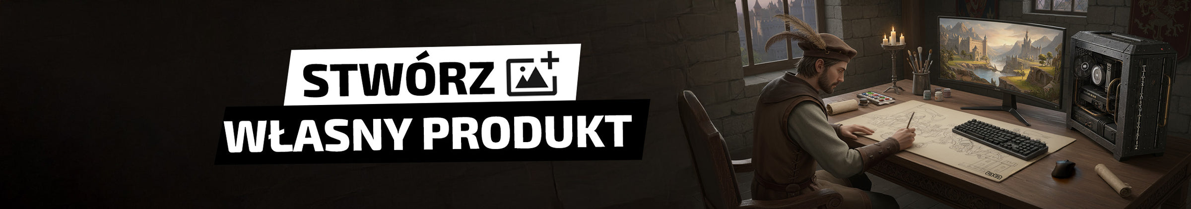 Stwórz własną podkładkę pod mysz, matę podłogową lub matę do karcianek, planszówek czy bitewniaków. Wybierz rozmiar i grafikę, jaką chcesz — nie musisz zamawiać więcej niż jednej sztuki. Wszystko robimy w Polsce, naprawdę szybko, bez problemów. U nas masz kontrolę nad wyglądem, nie idziesz na żadne kompromisy: produkt jest dokładnie taki, jak sobie wymarzysz.